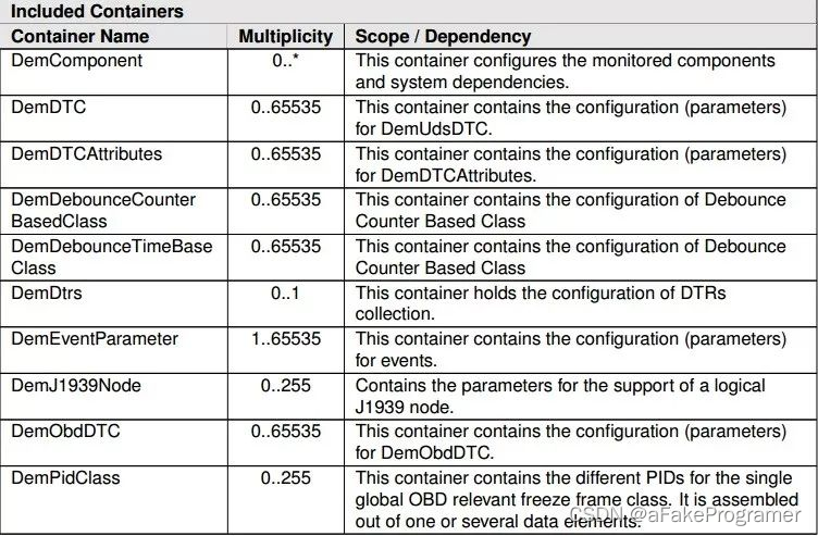 AUTOSAR标准中对Dem模块最上层分了两菜单栏(参见图1),分别是