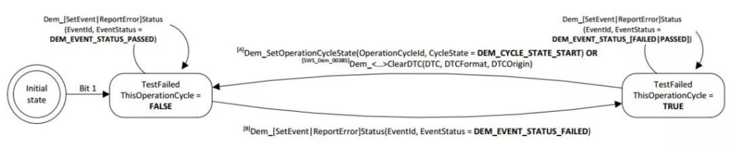 - 如果在Dem中实现,Dem_SetEventStatus()函数传递给Dem的状态为prepassed或prefailed。