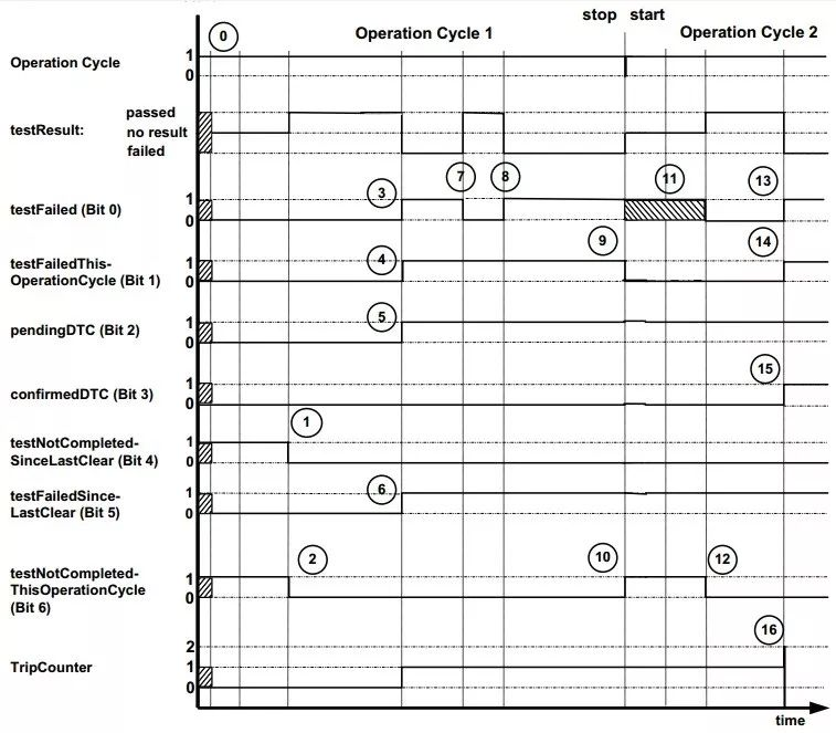 - Bit1: TestFailedThisOperationCycle – 当前运行循环中是否出现过testFailed=1。