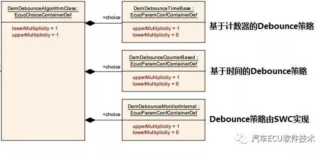 由于故障诊断由SWC和Dem模块共同完成,因此去抖动策略可以在SWC中实现,也可以在Dem模块中实现。