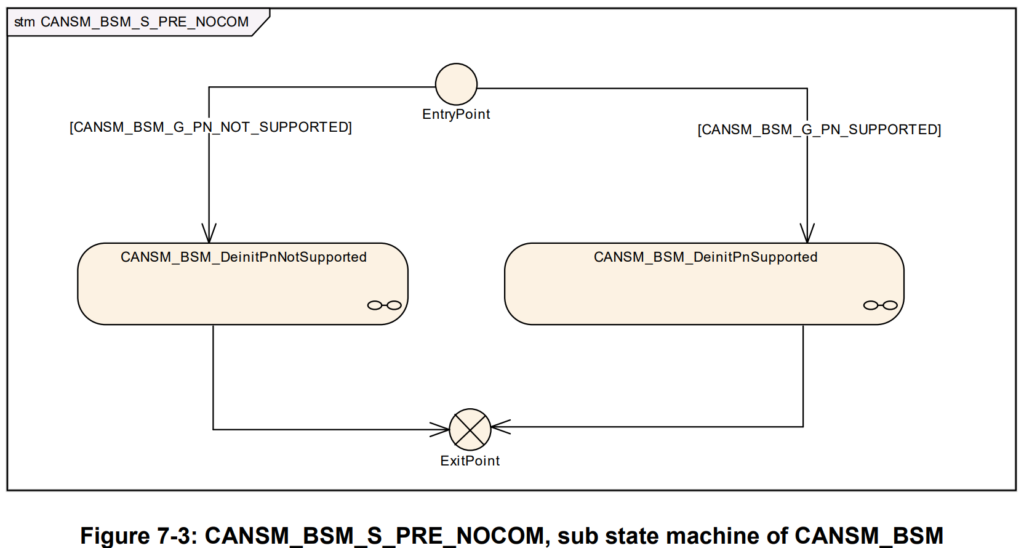子状态机CANSM_BSM_S_PRE_NO_COM的保护条件CANSM_BSM_G_PN_NOT_SUPPORTED应评估配置参数CanTrcvPnEnabled是否为假(可通过参考CanSMTransceiverId获得)或是否根本未配置CanSMTransceiverId。